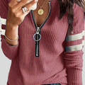 Discover the perfect blend of style and functionality with our Casual & Stylish Striped Patchwork Zipper Zipper Collar Tops(6 Colors).