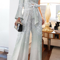 Fashion Patchwork Sequins One Shoulder Long Sleeve Two Pieces - A Must-Have Addition