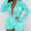 Guipure Lace Long Sleeve Top & Shorts Combo