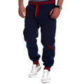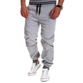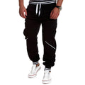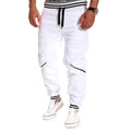 Loose plain colored Jogger with drawstring. The waistband and ankle hem are fitted. It is decorated with stripes on the waistband, ankle hem and at the knee.