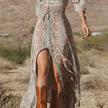 Bohemian Print Frenulum Buckle Slit V Neck Dresses Elegant For Special Occasions