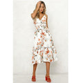Floral Print V Neck Midi Dress