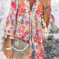 Discover the perfect blend of style and functionality with our British Style Print Tassel V Neck Princess Midi Dresses.