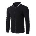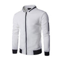 Short, thin casual jacket with zipper closure and Mandarin collar. Has fitted and ribbed lower hem, collar and cuffs. Has two vertical side pockets with no closure and one small sleeve pocket with zipper closure. Collar is decorated with contrastive stripe. Lower hem, cuffs and zippers are black on all models.