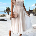 Casual & Stylish Classic Solid Lace Half A Turtleneck Mesh Dress Dresses