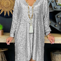 Casual & Stylish Classic Solid Sequins V Neck Straight Dresses(4 Colors)