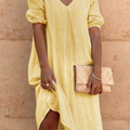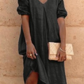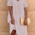 Elevate your style with our meticulously crafted Casual & Stylish Classic Solid Split Joint Fold V Neck A Line Dresses. An essential addition to your collection!