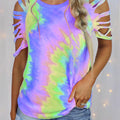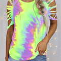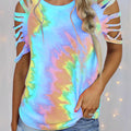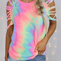 Discover the perfect blend of style and functionality with our Casual & Stylish Tie Dye Hollowed Out Patchwork O Neck T-shirts.