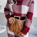 Casual y elegante Plaid Split Joint Contraste Cuello alto Falda lápiz Vestidos Suéter (sin cinturón)