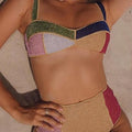 Colorido y sexy: trajes de baño con combinación dividida y patrón de bloques