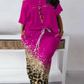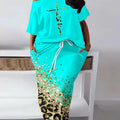 Conjunto de top de talla grande con letras Faith y falda de leopardo