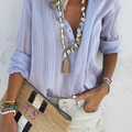 Eleva tu estilo con nuestras blusas con cuello en V y botones a rayas Street meticulosamente elaboradas. ¡Una adición esencial a tu colección!