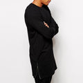 Long knitted loose-fit T-shirt with long sleeves. Has O-neck. Lower hem is decorated with vertical zippers upwards on the sides.