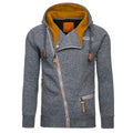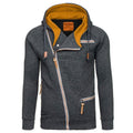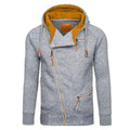 Regular-fit hoodie with an asymmetrical zipper front closure. Features a heathered pattern, front pockets with zipper closure. Has hood with a thick drawstring cord. Cuffs and hem are knit-banded.