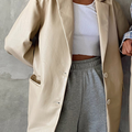 Fashion Elegant & Stylish Classic Solid Pocket Buckle Turn-back Collar Outerwear