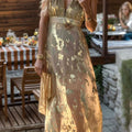 Sexy Bronzing Patchwork V Neck Evening Dresses Elegant For Special Occasions
