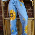 Discover the perfect blend of style and functionality with our Casual & Stylish Floral Make Old Basic Mid Waist Wide Leg Positioning Print Bottoms.