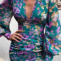 Discover the perfect blend of style and functionality with our Fashion Elegant & Stylish Leopard Floral Patchwork Fold V Neck Pencil Skirt Dresses(4 Colors).