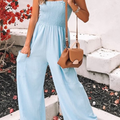 Discover the perfect blend of style and functionality with our Fashion Living Classic Solid Pocket Spaghetti Strap Loose Jumpsuits(5 Colors).