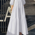 Discover the perfect blend of style and functionality with our Casual & Stylish Classic Solid Patchwork Buttons O Neck Cake Skirt Dresses(3 Colors).