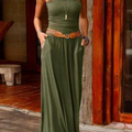 Discover the perfect blend of style and functionality with our Casual & Stylish Classic Solid Patchwork Strapless Waist Skirt Dresses(4 Colors).