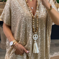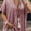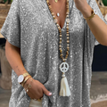 Discover the perfect blend of style and functionality with our Fashion Casual & Stylish Classic Solid Sequins V Neck T-shirts.