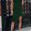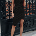 Discover the perfect blend of style and functionality with our Fashion Classic Solid Slit O Neck Pencil Skirt Dresses(3 Colors).
