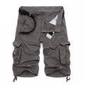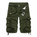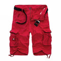 - Loose-fit knee-length cargo shorts with regular waist and zipper fly. Plain-colored. Has two oblique side pockets with no closure, two horizontal leg pockets. Leg hems have drawstrings. Leg pockets are further decorated with canvas appliques and metal rings. The belt is illustration, not part of the garment.